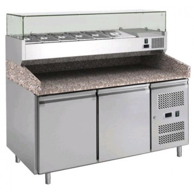 Tavolo refrigerato/Banco Pizza TN con vetrina porta ingredienti Modello PZ2600TN38-FC in acciaio inox AISI 210 Ventilato 2 porte refrigerate