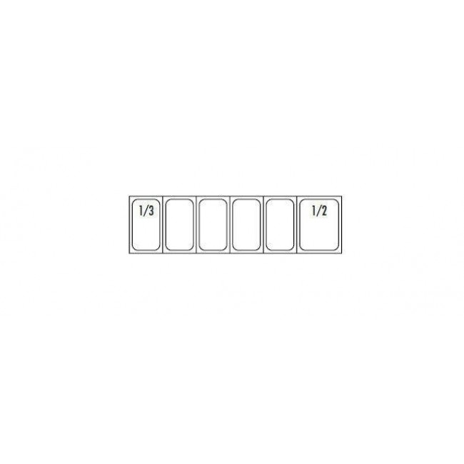- Refrigeratore di vaschette statico in acciaio inox, adatto per il contenimento di 5 bacinelle GN1/3 + 1 GN 1/2 non incluse.