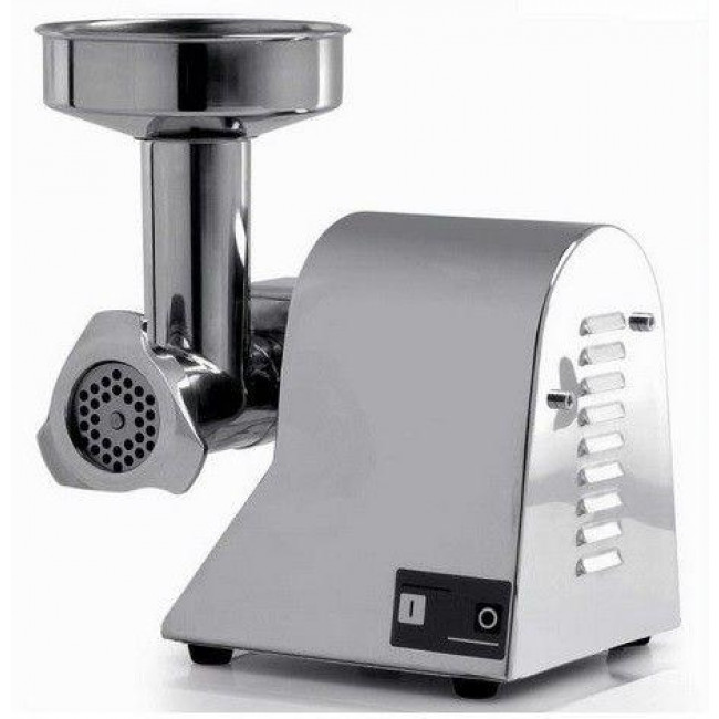 Tritacarne elettrico Modello TI8 costruito in acciaio inossidabile lucidato Bocca: Ø 60 mm Produzione oraria: 20 kg