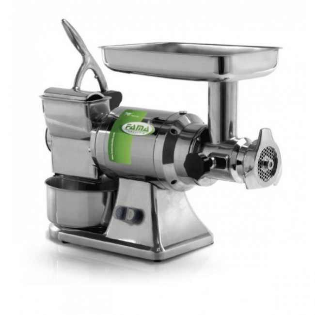 Tritacarne grattugia Modello Tritacarne TG22 in lega d'alluminio pressofuso Bocca tritacarne Ø 82 mm Bocca grattugia:140x80 mm Produzione oraria tritacarne 300 Kg Produzione oraria grattugia: 70 Kg