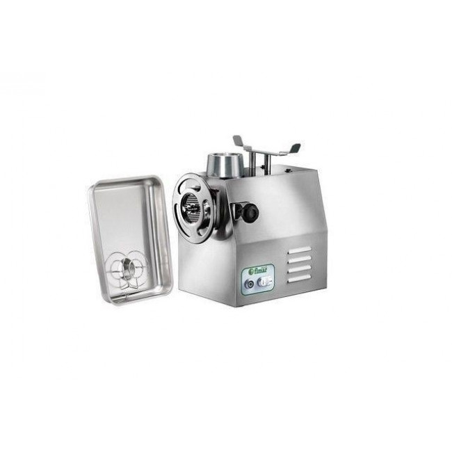Carcassa prodotto e tramoggia in acciaio inox con gruppo macinazione prodotto in acciaio inox estraibile, bocca ingresso carne ø 76 mm, microinterruttori di sicurezza su tramoggia e inversione di marcia