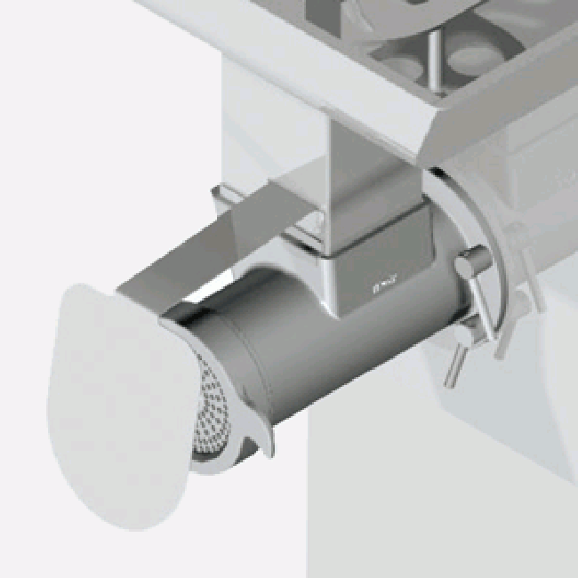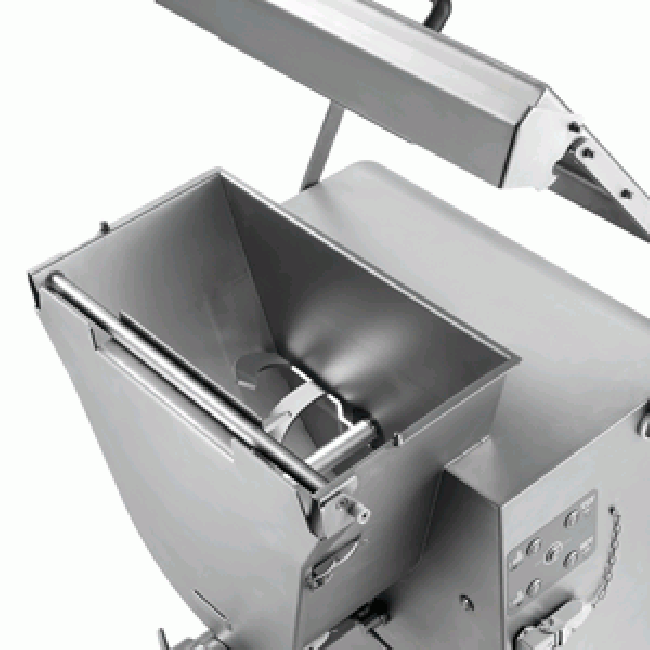 Costruzione in acciaio inox AISI 304 lavabile con spruzzo d’acqua con 2 motori indipendenti IP x5 per tritacarne e convogliatore, riduttori angolari ermetici a bagno d’olio, micro di sicurezza su coperchio vasca e auto-apertura coperchio gestita da pistoni ad aria