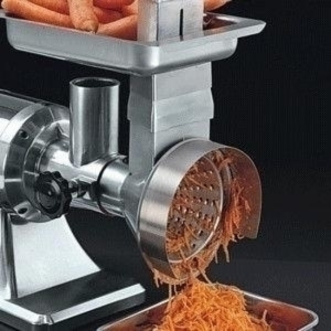 Costruzione in alluminio pressofuso lucidato. con motore ventilato e riduttore tritacarne a bagno d’olio. Bocca ed elica tritacarne in ghisa trattata per uso alimentare, su richiesta anche in acciao inox Aisi 304.