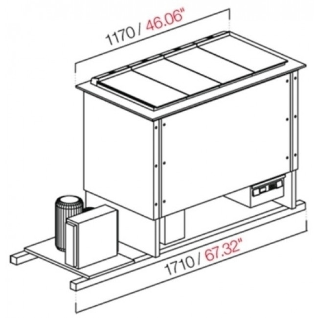 - Una volta aperto il vetro funge da barriera tra prodotto e cliente per questo è possibile installare la vasca su banchi senza bancalina
