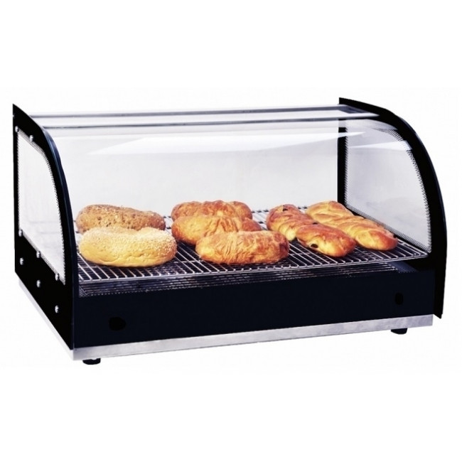 Vetrina espositore da banco calda Modello DHN300 N. 1 piano Fianchi in vetro temperato con frontale ricurvo Sistema di riscaldamento con resistenza