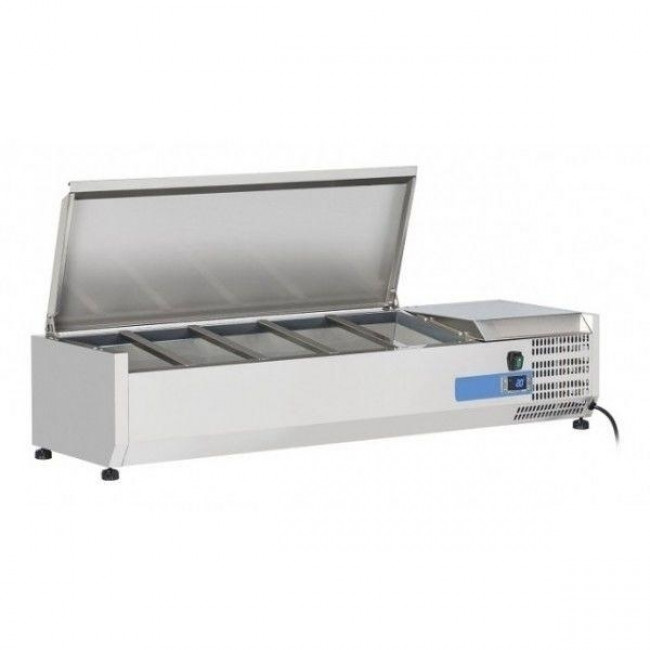 Vetrina refrigerata per pizza in acciaio INOX AISI 201 ForCold Modello VRX1500-380-FC 5 x GN1/3 + 1 x GN 1/2